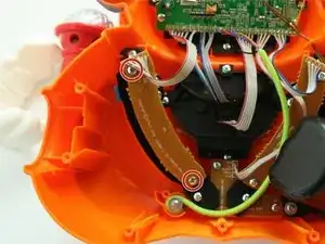 Снимите два винта Phillips #1 длиной 7,9 мм, крепящие плату переключателя режимов.