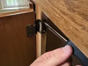 В отличие от других руководств по замене петель на iFixit, мы сосредотачиваемся на замене накладной петли, которая лучше подходит для удерживания более тяжелых предметов. Именно поэтому так важно заменить любую сломанную накладную петлю — вероятность повреждения вашей тяжелой двери шкафа значительно выше.