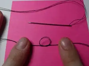После наниживания иглы завяжите нить, чтобы она не соскользнула с иглы.