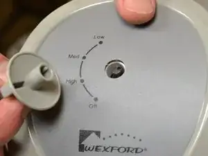 При сборке убедитесь, что нижняя часть новой ручки совмещена с поворотным механизмом вентилятора, прежде чем надавливать.