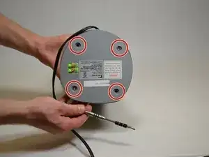 Снимите 5 более мелких винтов, видимых через маленькие отверстия между основанием и корпусом.