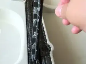 Используйте фен (или тепловую пушку), чтобы разогреть клей, удерживающий старый шарнир на месте.