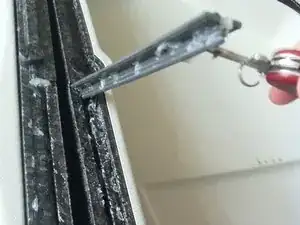 Когда клей начнёт размягчаться, можно поддеть части шарнира инструментом, например, ножом швейцарского армейского ножа. Если он всё ещё прочно держится, продолжайте прогревать феном.