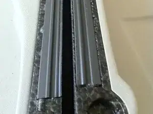 Сложите чемодан для гитары и зажмите зажимами, чтобы плотно прижать. Сдвиньте две стороны, чтобы излишки Shoe Goo выдавились наружу.
