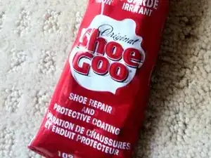 Удалите излишки Shoe Goo бумажным полотенцем или салфеткой.