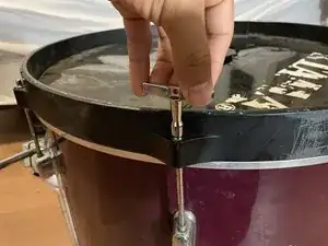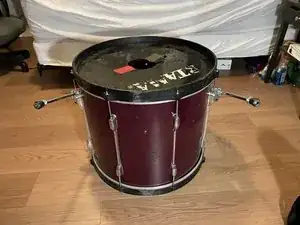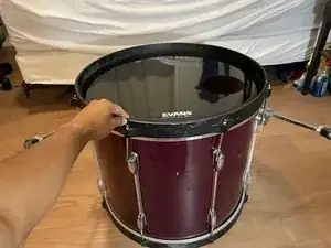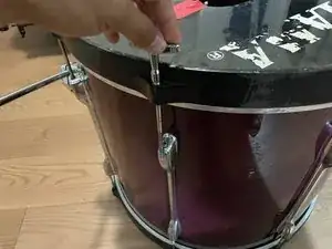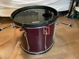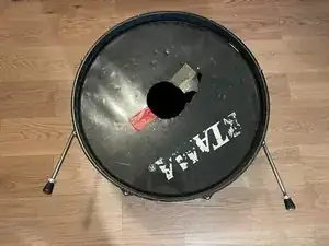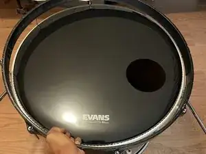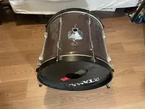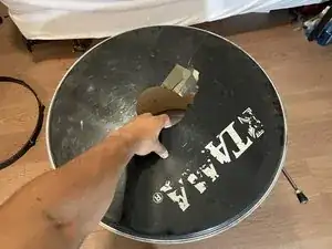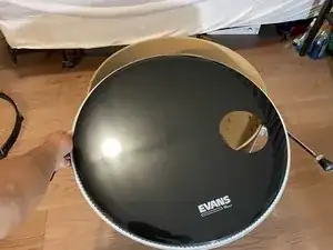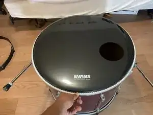 В демонстрации ниже заменяется сторона с портом для микрофона, но эти инструкции подходят для любой стороны бас-бочки. В этой модели барабан — Tama диаметром 22 дюйма (крышка портового отверстия также имеет диаметр 22 дюйма).