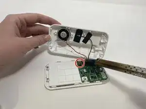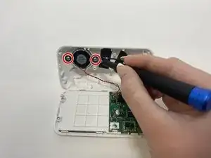 Выкрутите два винта Phillips 7 мм #00, крепящих динамик.
