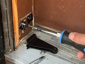 Удалите винты из внешней скобы, соединяющих доводчик двери, с помощью отвертки.