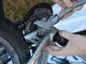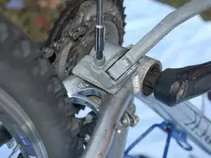 Переверните велосипед так, чтобы он был сбалансирован и опирался на рукоятку и седло.