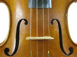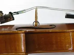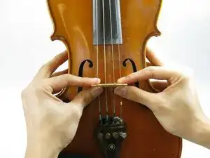 Поместите новую подставку между центрами f-образных резонаторных отверстий вашей скрипки.