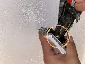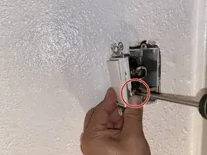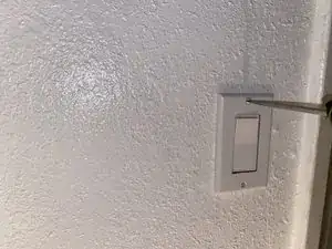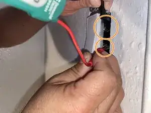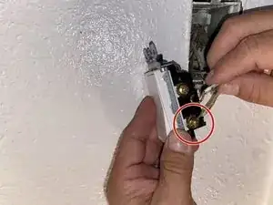Используйте индикатор напряжения, чтобы проверить и убедиться, что питание отключено. Поднесите оба конца индикатора к боковой части выключателя в стене. Подключите заострённые концы индикатора и коснитесь ими винтов на боковой стороне выключателя.