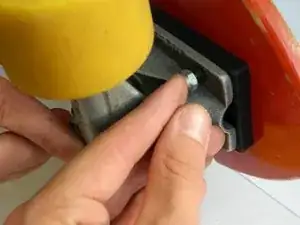 Держите гайки на нижней стороне скейтборда на месте с помощью ключа 3/8", затягивая болты с верхней стороны скейтборда отверткой. Затягивайте болты по диагонали, пока головка болта не утопится немного в наждаке.