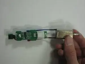 Извлеките внутренности триммера: плату, аккумулятор, мотор и выключатель.
