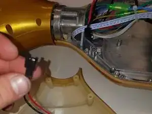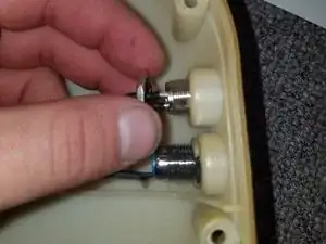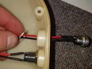 Когда крышка будет полностью снята, открутите гайку на задней стороне порта зарядки и кнопки питания, которая удерживает их на месте. Чтобы снять порт зарядки и кнопку питания, протолкните их через переднюю часть крышки.