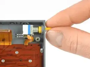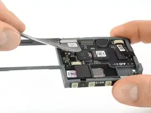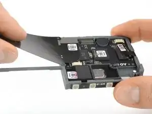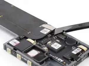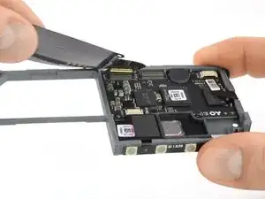 Используйте плоский пинцет, чтобы вытащить маленький шлейф из ZIF-разъёма вверх и наружу.