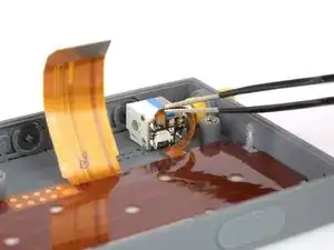 Шлейф «highway» слегка приклеен к средней рамке. Чтобы снять его, аккуратно вытолкните его снизу.