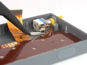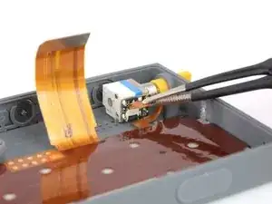 Поднимите одну из лапок пинцетом, чтобы открыть маленький чёрный флажок ZIF-разъёма.