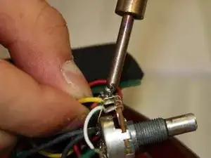 Используйте паяльник, чтобы распаять чёрный и зелёный провода от нижней части потенциометра.