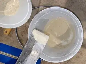 Смешайте порцию раствора и герметика, чтобы получить пасту.