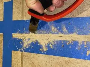 Возьмите ручной инструмент для удаления раствора и выскребите оставшийся раствор между плитками до полного образования пустоты.