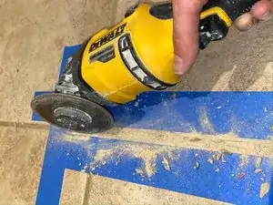 Используйте шлифовальную машинку для бетона, чтобы удалить раствор в пределах скотча в месте расположения трещины.