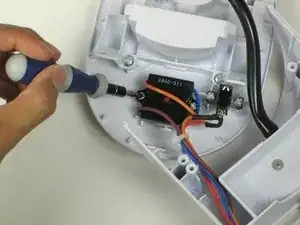 Удалите два винта размером 3 мм Phillips #0 с задней стороны черного блока переключателя.