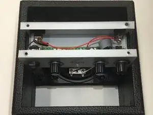 Отвинтите четыре винта длиной 25 мм крестовой отвёрткой Phillips #0 с верхней части усилителя.