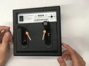 Используйте пальцы, чтобы подпереть заднюю панель и отвести её от усилителя.