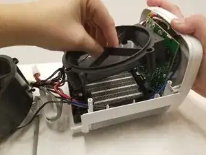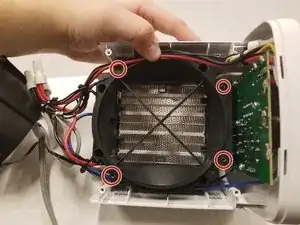 Отвинтите четыре винта 14 мм, крепящие корпус вентилятора, используя отвертку Phillips #2.