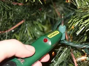 Перед началом работы убедитесь, что вы умеете правильно пользоваться тестером целостности цепи и знаете, как читать его показания. Кроме того, обязательно дважды проверьте, что ёлка отключена от сети, и что рядом с вами нет жидкостей. Жидкости и любые предметы, не относящиеся к ремонту, представляют опасность и могут быть очень опасны для вас.