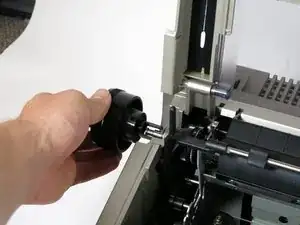 Снимите регулировочные рукоятки ролика подачи бумаги, потянув их наружу с усилием.