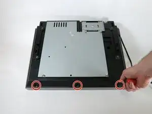 Открутите три винта длиной 19 мм, расположенные в углублённых отверстиях по краю чёрной нижней панели, с помощью отвёртки Phillips #2.