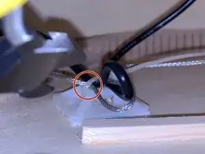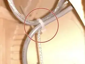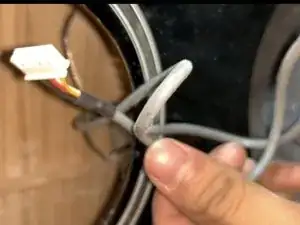 Обрежьте стяжку, держащую лишнюю длину проводов. Она находится внутри баса.
