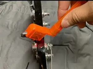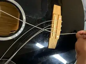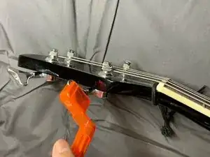 Используйте ветрозащитное устройство для гитары, чтобы осторожно снять каждую струну.