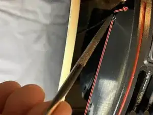 Используя металлический напильник, точите вверх и вниз, следуя контуру.