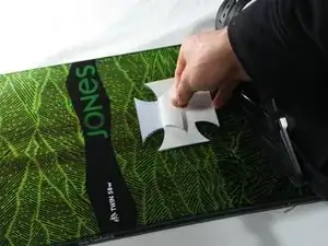 Прижмите накладку крепко, чтобы она прилипла к борду, и устраняйте любые возникшие пузырьки воздуха.