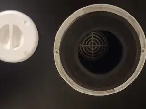 Держите крышку и поворотом против часовой стрелки разблокируйте её. После разблокировки поднимите крышку, чтобы увидеть внутренний чёрный фильтр. Храните крышку в безопасном месте.