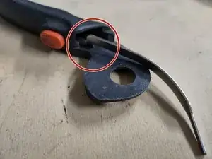 Удалите вторую часть сломанной пружины из рукоятки. Если она застряла, вы можете использовать плоскую отвертку, чтобы выкрутить ее.