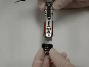 Переверните зубную щетку и надавите на металлический наконечник, пока внутренние компоненты не отделятся от корпуса.