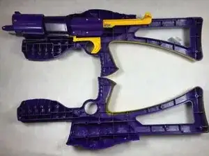 Разъедините половинки игрушечного пистолета, чтобы показать внутренности. Отложите левую половину в сторону (все внутренние компоненты находятся на правой половине).