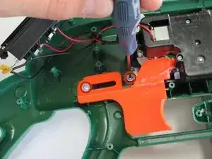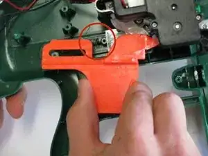 Если вы впервые разбираете ваше оружие, ложа будет приклеена к каждой половине корпуса. Чтобы оторвать ложе от рамки оружия, вам нужно аккуратно покачивать две половинки, чтобы клей оторвался. Пластик оружия может немного сломаться или деформироваться.