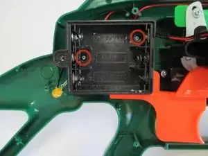 Удалите два винта 1/16 дюйма, крепящих батарейный отсек к корпусу оружия, используя отвертку Philips #00.
