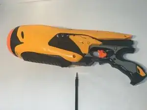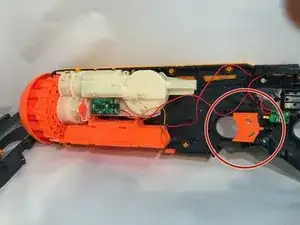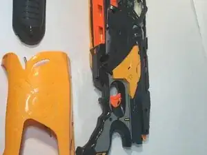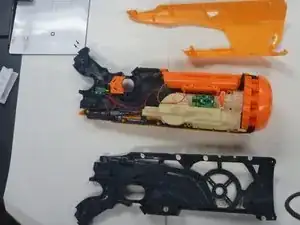 Осторожно снимите желтые и серые части корпуса с бластера, чтобы открыть материнские платы и мотор бластера.