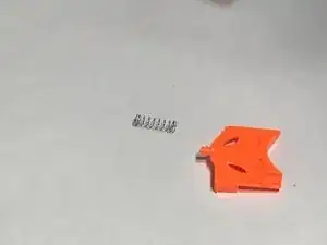 Установите спусковой механизм обратно на место с пружиной, вставленной в небольшой слот позади спускового механизма. Он должен встать на место прямо с небольшим сжатием.