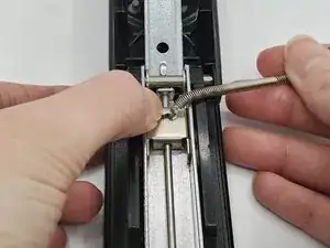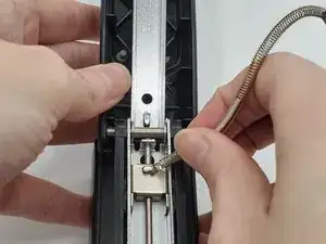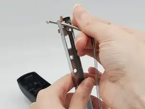 Зацепите новую пружину за крючок на внутренней стороне металлической части рукояти.