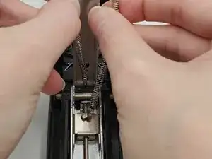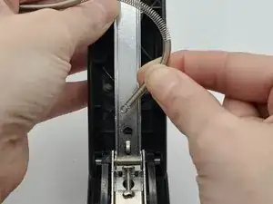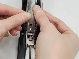 Откройте степлер, удерживая рукоять, чтобы получить доступ к пружине.
