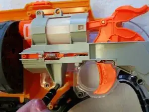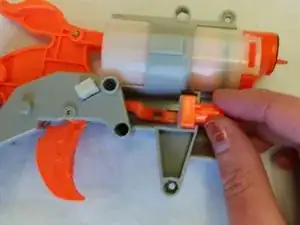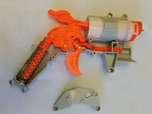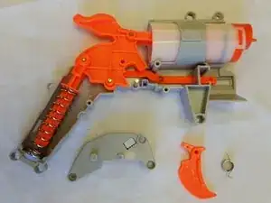 Извлеките пружину и спусковой механизм из пушки и отложите в сторону.