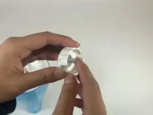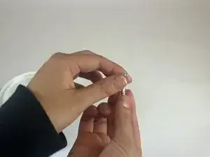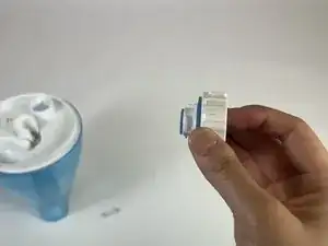 Продолжая нажимать на стержень, потяните маленькое синее силиконовое кольцо полностью с заострённого конца.