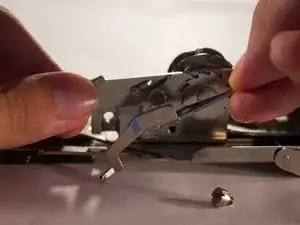 Отвинтите винт, расположенный под вилкой, с помощью плоской отвертки.