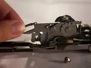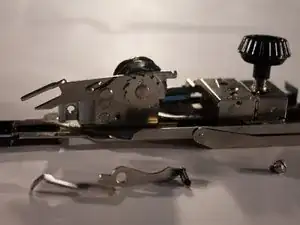Если вилка в устройстве для выполнения пуговичных отверстий движется некорректно при работе, вероятно, требуется заменить пружину, удерживающую вилку.